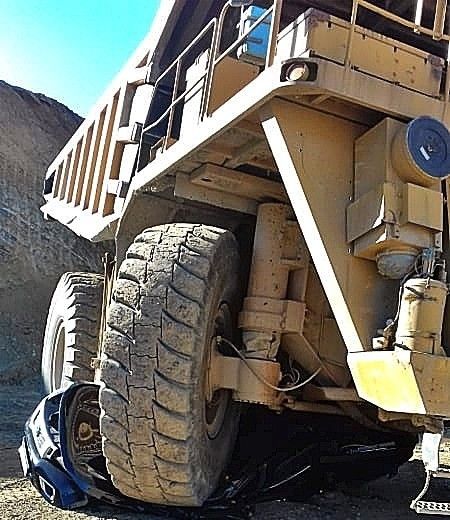 Bozbelen köyü yakınlarında bulunan maden sahasında dev iş makinesini kullanan Arif U., maden sahasında manevra yaptığı esnada fark edemediği park halindeki 01 FDD 75 plakalı kamyonetin üzerinden geçti. İş makinesinin altında kalarak tamamen ezilen kamyonet kullanılmaz hale geldi. Kazada araç içerisinde kimsenin olmaması olası bir faciayı önledi.