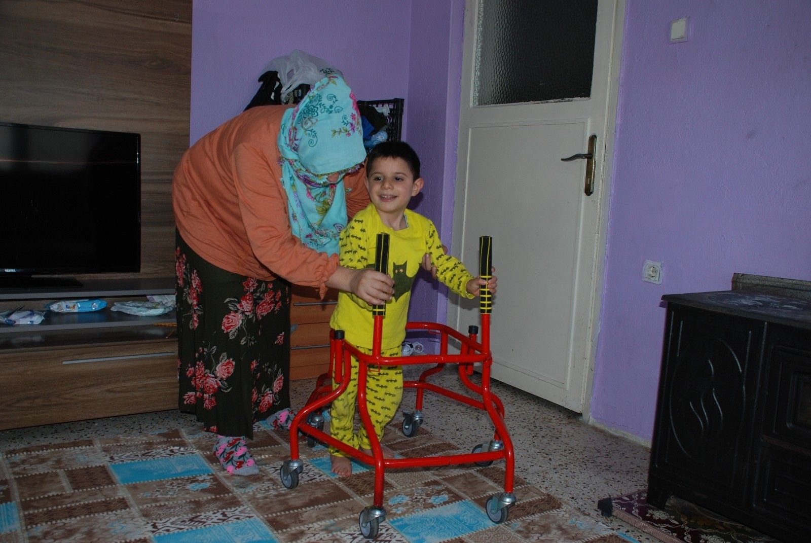 "Doğduğunda ana damarı dardı. Ameliyat edip stent taktılar. 5 aylıkken zatürre geçirdi. 1 yaşında ikinci kalp ameliyatını oldu. Ameliyatta beynine oksijen gitmediği için beyin kanaması geçirdi. Sonra kafasına şant takıldı. Beyninden ameliyatlar oldu. Kalp kapağı olmadığı için bir daha ameliyat olacak. Oğlum yürüyemiyor ve konuşamıyor. Eşim kaza geçirdiği için şu an ağır işlerde çalışamıyor. Ben de örgü örerek eve katkıda bulunuyorum. Örgülerimi sosyal medyada satmaya çalışıyorum. Ben bir anne olarak savaşıp mücadele ediyorum. Oğlum uyurken, oynarken örüyorum. Oğluma da zaman ayırıyorum. Kısıtlamadan dolayı fizik tedavisini evde yapıyorum, ona suda masaj yapıyorum."