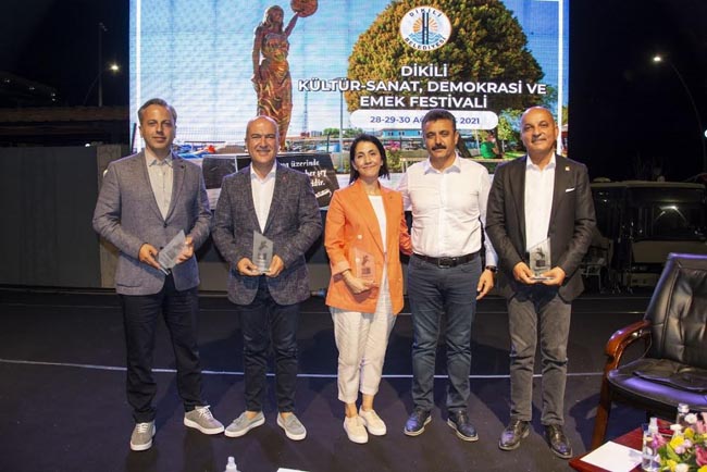 30 Ağustos Zafer Bayramı’nın 99. yılıyla birleştirilen festivalin coşkuyla gerçekleştiğini ifade eden Dikili Belediye Başkanı Adil Kırgöz, “ Üç gün boyunca birbirinden değerli konuklarımızın yer aldığı Dikili, Kültür - Sanat, Demokrasi ve Emek Festivali’mizi adına yakışır bir şekilde gerçekleştirdik. Dikili’mizin kültürünü yansıtıp, sanata ve sanatçıya sahip çıkan, demokrasi savunucularını, emeğin temsilcilerini bir araya getirerek hemşehrilerimizle ve misafirlerimizle buluşturduk. Festivalimizin kapanışını 30 Ağustos Zafer Bayramımızın 99. yılına özel kılmanın büyük onurunu da yaşadık. Büyük önderimiz Gazi Mustafa Kemal Atatürk’ün kültür ve sanata bakışını kendimize yol çizdik. Bu yolda da sonuna kadar yürümeye devam edeceğiz. Kültür ve sanatla bütünleşen bir Dikili için çalışmalarımızı sürdüreceğiz. Festivalimize katılarak bizlerle olan herkese teşekkür ederim” diye konuştu.