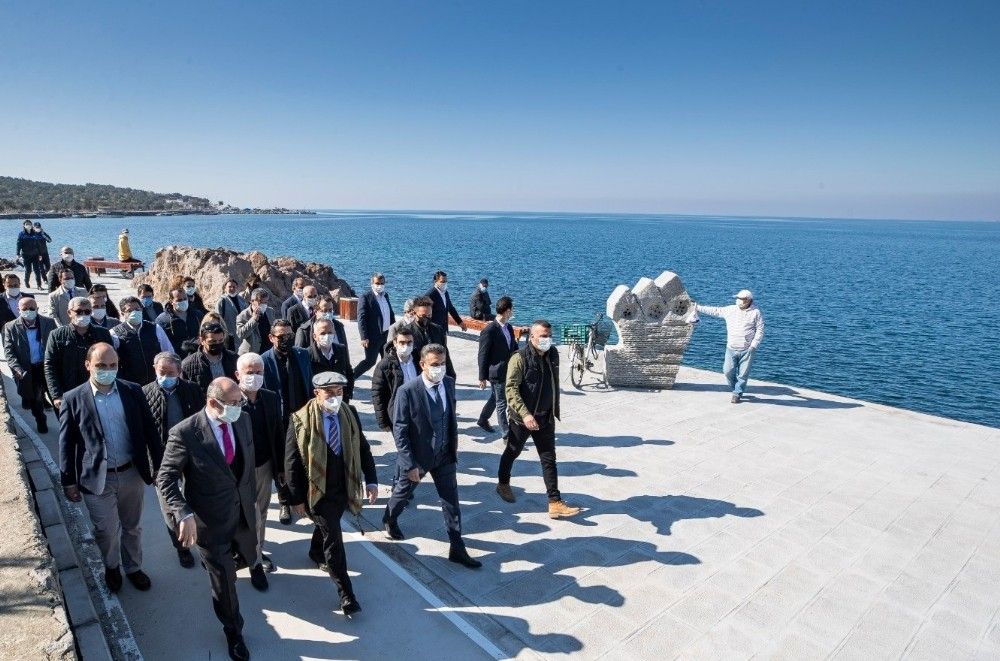 Başkan Soyer, Dikili'de Büyükşehir'in modern görünüme kavuşturduğu Sevgi Yolu ile zemin döşemesinden peyzaja kadar baştan sona yenilediği 75. Yıl Parkı'nı ve İZBETON'un ilçede sürdürdüğü parke taşı çalışmalarını da inceledi. Başkan Tunç Soyer'in göreve geldiği 31 Mart 2019'dan bugüne kadar İzmir Büyükşehir Belediyesi tarafından Dikili'de 277 bin metrekare kilit parke taşı, 75 bin ton sıcak asfalt ve 326 bin metrekare sathi kaplama yapıldı.