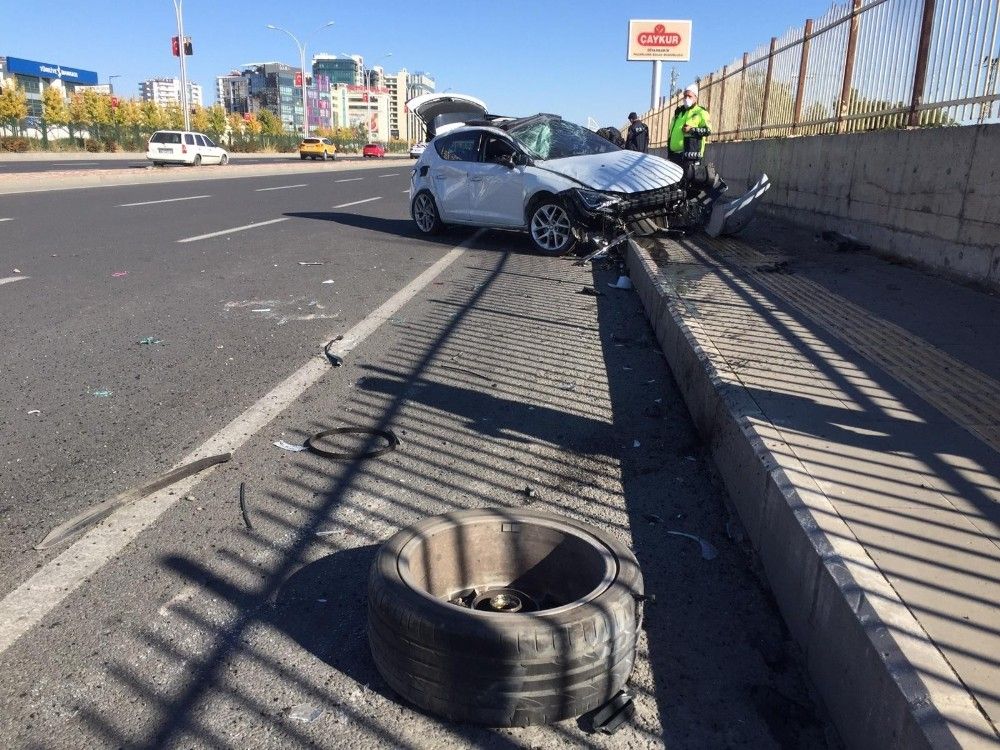 Diyarbakır'da sürücüsünün direksiyon hakimiyetini kaybettiği otomobil metrelerce takla attı. Lastiği koparak hurdaya dönen araçta bulunan 2 kişi yaralandı.