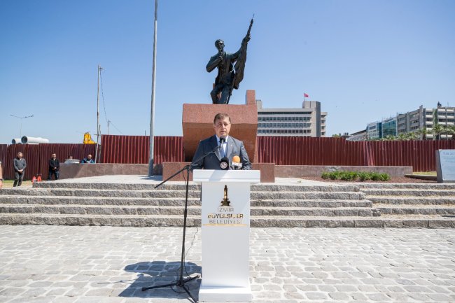 İzmir’in işgaline karşı ilk kurşunu atan gazeteci Hasan Tahsin, şehit edilişinin 105'inci yılında meslektaşları tarafından törenle anıldı. Hasan Tahsin’in Konak’ta bulunan anıtı önünde düzenlenen programa katılan Başkan Dr. Cemil Tugay, “Bu zafer ülkemizi Cumhuriyet'in kuruluşuna götürdü. O nedenle İzmir ilk işgale uğrayan ama aynı zamanda kurtuluş ateşinin ilk yakıldığı şehir. Ve kuruluşun şehri olarak ülkemizin gurur kentlerinden biri” dedi.