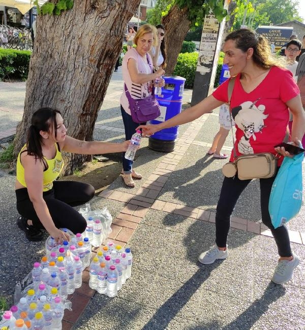 Diyaliz hastası kız 'siz de olmayın' diye su dağıttı