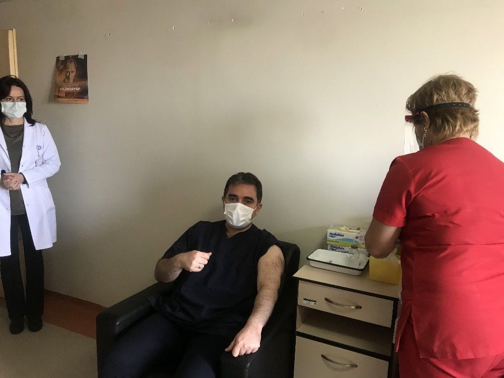 Türkiye genelinde yüzbinlerce sağlık çalışanı Çin'den getirilen Korona virüs aşısını olmaya devam ederken, Avcılar Murat Kölük Devlet Hastanesi Başhekimi İbrahim Ulusoy da doğum gününde aşı oldu.