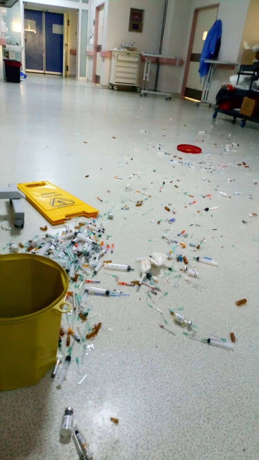 Hastanenin yoğun bakım servisi girişinde yaşanan olay güvenlik kamerasına da yansırken hasta yakınlarının da savcılığa şikayette bulunduğu öğrenildi.