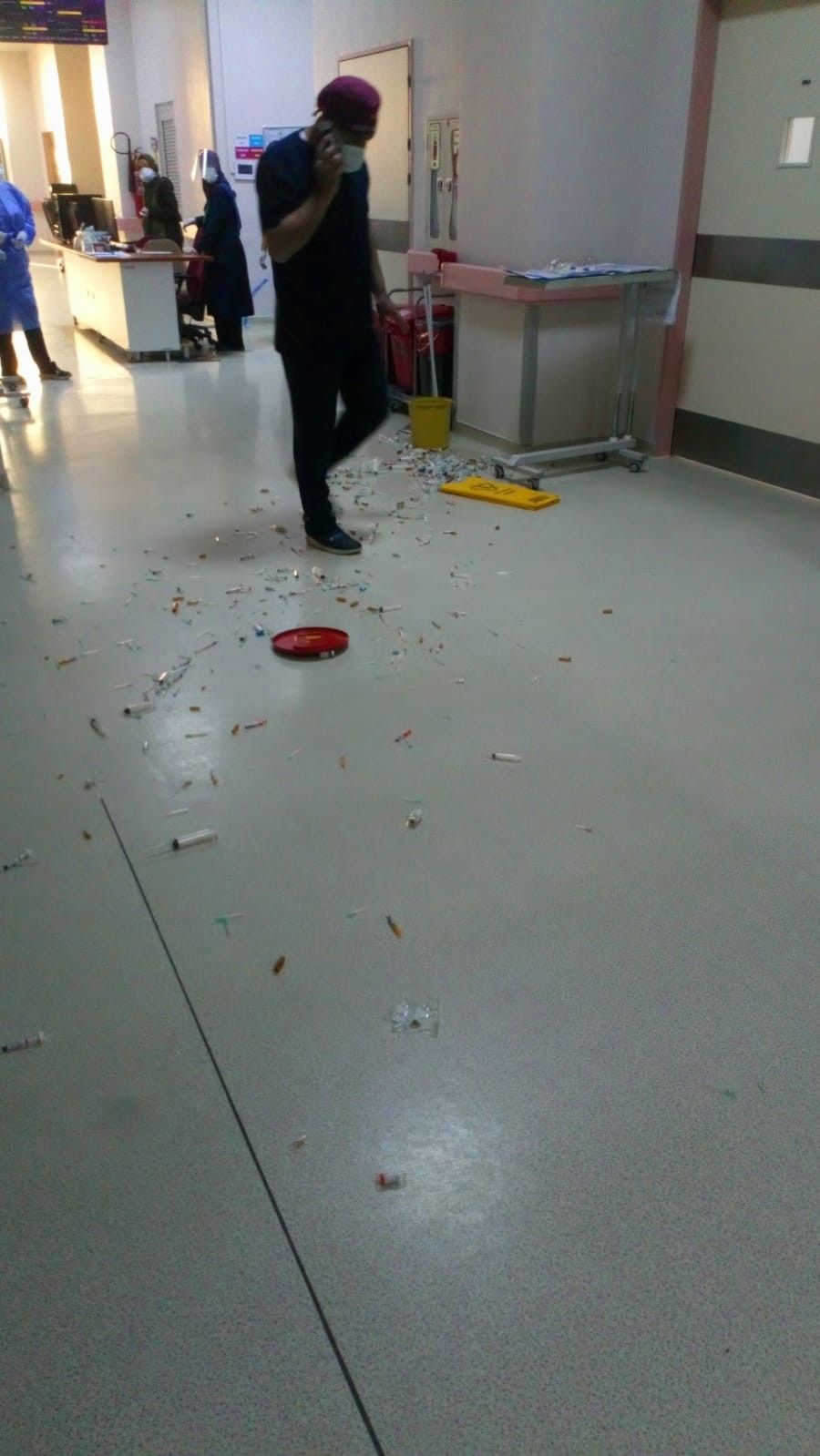 Eğitim ve Araştırma Hastanesi Başhekimi Prof. Dr. Erdal Aktürk ise hayatını kaybeden hastanın korona virüs şüphelisi olması nedeniyle hemen yoğun bakıma alındığını ancak burada hastanın iki kez kalbini durduğunu söyledi. Yoğun bakımda hastaya müdahale edilip yeniden hayata döndürüldüğünü ifade eden Aktürk, "Burada sonrasında hastamızın tekrar kalbi duruyor ve müdahaleye cevap vermiyor. Hastamızın hayatını kaybetmesi üzerine hasta yakınları tarafından doktorumuza ve sağlık çalışanlarına sözlü hem fiili müdahalede de bulunuluyor. Hasta yakınları yoğun bakımı basıyor ve her tarafı dağıtıyorlar. Burada hemşire ve doktorlarımıza şiddet uyguluyorlar. Burada zorla ölmüş olan hastaya kalp masajı yaptırıyorlar" diye konuştu.