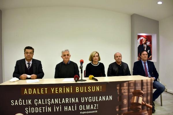 İZMİR Tabip Odası üyeleri, asistan doktor Kadir Songür'ü (26) jiletle boynundan yaralayan hastası Bayram Kaynak'a, yerel mahkemenin indirim yapmadan verdiği 20 yıl hapis cezasının İstinaf Mahkemesi tarafından bozulup, yeniden yargılanmasına başlanmasının ardından basın açıklamasıyla sanığa üst sınırdan ceza verilmesini istedi.