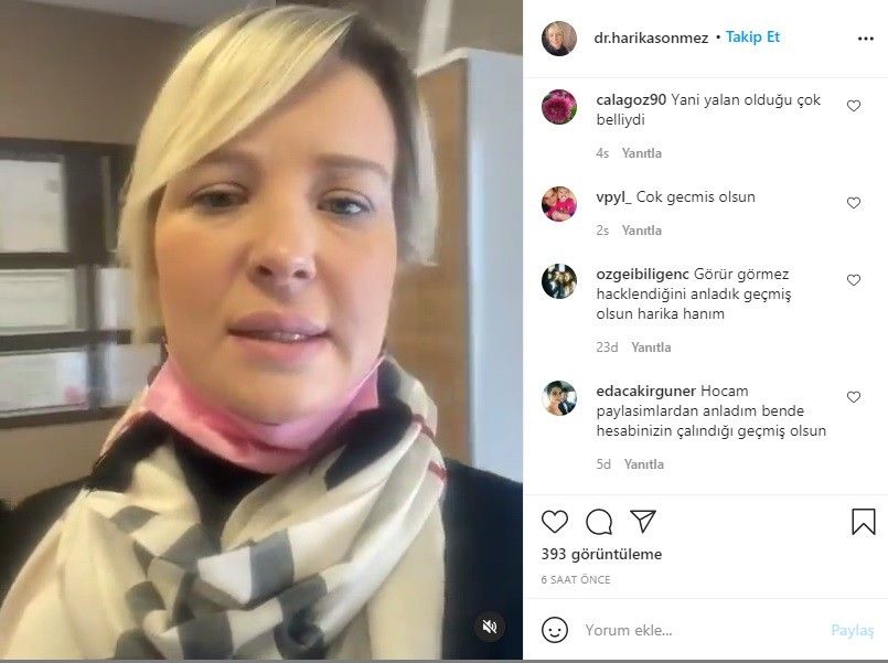 Liv Hospital Çocuk Sağlığı ve Hastalıkları Uzm. Dr. Harika Sönmez'in 41 bin takipçiye sahip @dr.harika_sonmez hesabı bir dolandırıcılık çetesi tarafından dün ele geçirildi. Çalınan hesap üzerinden bahis paylaşımları yapılarak takipçilerden para istendi. Takipçilerinin 150 bin TL dolandırıldığını açıklayan Harika Sönmez hesaba itibar edilmemesi için çağrı yaptı. Çetenin yöntemini anlatan Sönmez, "Banka hesap numarası vererek bahis oynadığımı ve para göndermeleri karşılığında katlanarak geri ödeyeceğimi söylemektedirler. Şu ana kadar ne yazık ki; takipçilerimden 150 bin TL üzerinde para dolandırmışlardır. Lütfen bu hesabın yazdıklarına ve paylaştıklarına asla itibar etmeyiniz" dedi.