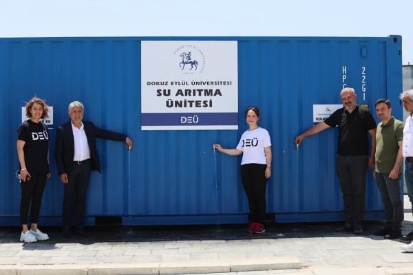 DEÜ'nün öz kaynaklarıyla, Hatay'ın Kırıkhan ilçesinde Sultanbeyli Belediyesi ve Tuzla Belediyesi'nin kurduğu iki farklı konteyner kentte su arıtma ünitesi açtığını ifade eden Rektör Prof. Dr. Hotar, "Üniversitemiz Çevre Mühendisliği Bölümü tarafından ileri arıtım teknikleriyle su arıtımı yapan, her biri günlük 10 ton ve saatte yaklaşık 420 litre su üretebilme kapasitesine sahip su arıtma ünitelerimiz hizmete girmiş bulunuyor. Bugün Kırıkhan'da deprem bölgesindeki yedinci Su Arıtma Ünitesini hizmete aldık. Hatay'ın yanı sıra Malatya ve Adıyaman'da da Üniversitemiz öz kaynaklarıyla projeler yapıyoruz. Özellikle yaz aylarında oluşabilecek su kaynaklı hastalıkların önlenmesinde etkili olacak içme suyu arıtma tesisleri, deprem bölgesine katkı sağlayacak" ifadelerini kullandı.