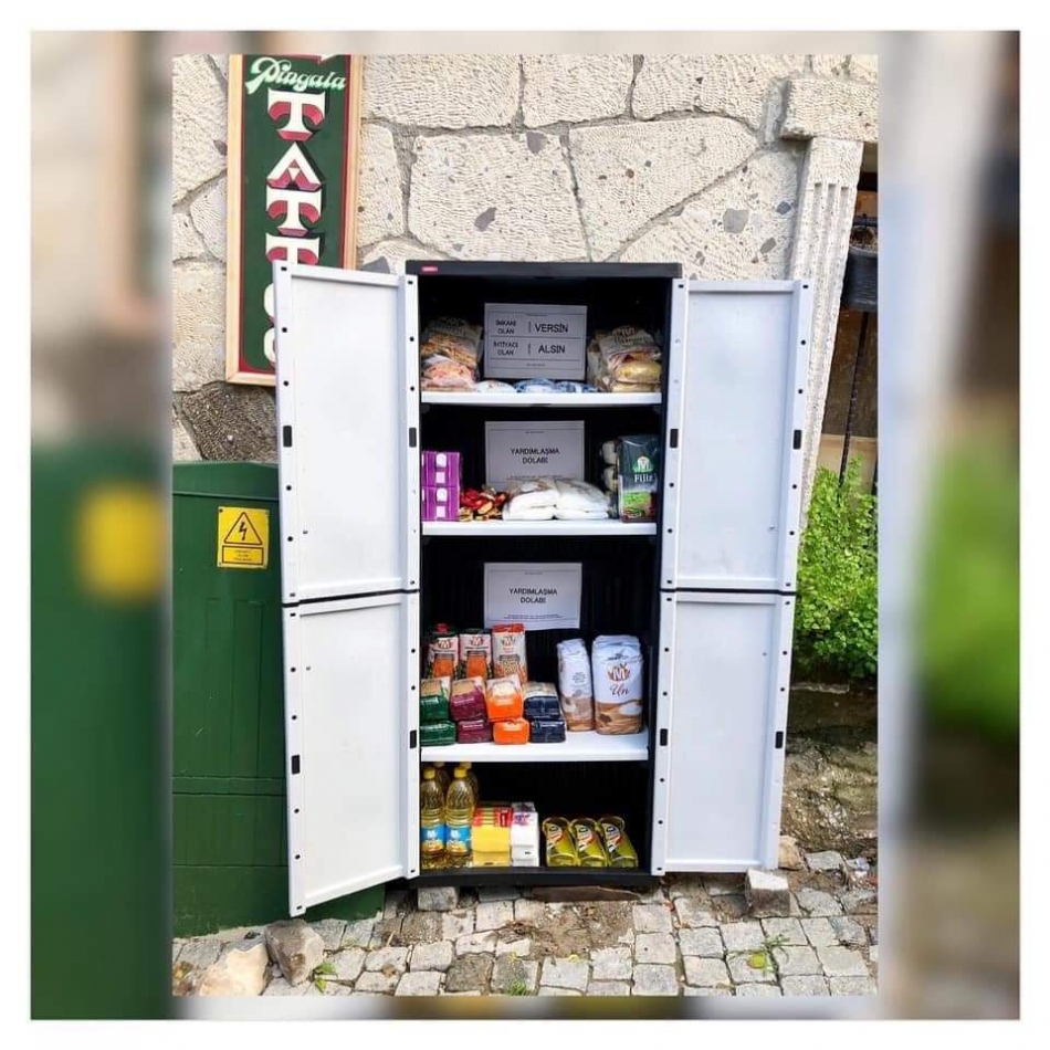 Urla Sanat Sokağı AKM girişinde, sağdan 1. Sokak köşesindeki dolaba yolunuz düşerse uğrayın, düşmezse de yolunuzu düşürün lütfen. 1 paket makarna da olur, imkanlarınız ölçüsünde 10 koli sıvı yağ da.Urla’nın birleşmesi ve birlikte güçlenmesi özellikle işsizliğin büyüdüğü bu zor günlerde sözle değil, davranışlarla olmalı.İmkanı olan herkes, suistimal edileceği korkusu yaşamadan lütfen düzenli destek versin dolabımıza.. Urla’yı Urla yapan şey, öncelikle ne tavuk gıdaklaması, ne gübre kokusu, ne pahalı villaları ne de Enginar Festivali değil, HALKININ BİRBİRİNE SAHİP ÇIKMASI olsun..