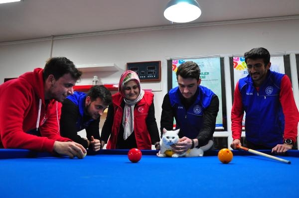 Kediyi bulup merkeze getiren gençlerden Manisa Celal Bayar Üniversitesi Spor Bilimleri Fakültesi Antrenörlük Bölümü öğrencisi Oğuz Çaça, "Bir aktivite için yaya olarak gençlik merkezine geldiğimiz sırada yağmurda ıslanmış kediyi gördük. Durumu kötüydü. Gençlik merkezimize almak istedik, müdürlerimiz de sağ olsun bizleri kırmadı. Kediye bakmamıza izin verdiler. Daha sonra bakanlığımızın böyle bir projesi olduğunu öğrendik. Kedimiz bize her türlü oyunda eşlik etmeye başladı. Gençlik merkezimizin çok güzel bir üyesi oldu" dedi.