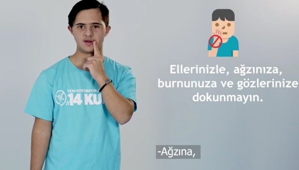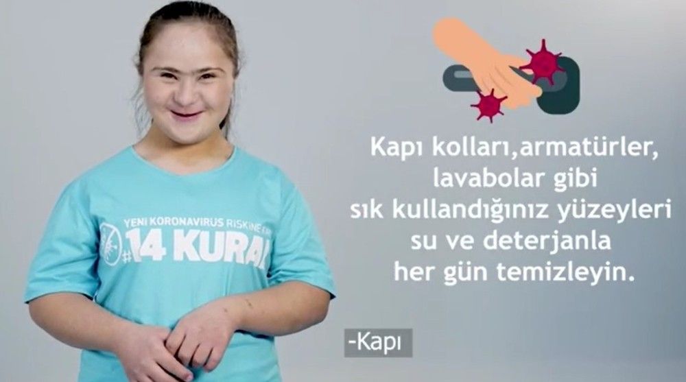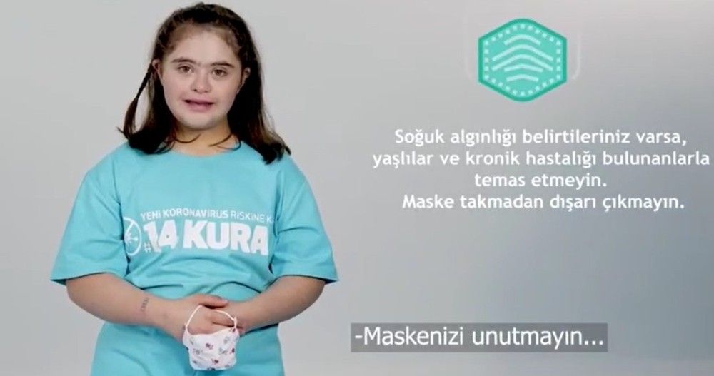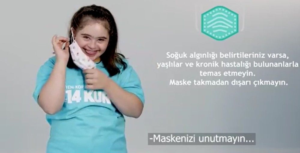 Antalya'da 3 Aralık Dünya Engelliler Günü kapsamında down sendromlu 14 çocuğun yer aldığı, 'yeni korona virüs riskine karşı 14 kural' konulu kamu spotu hazırlandı. Kamera karşısına geçerek korona virüsle mücadele için uyulması gereken 14 kuralı anlatan özel çocuklar beğeni topladı.