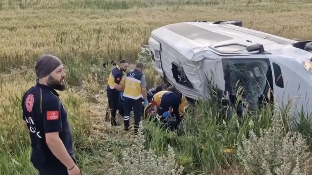Düğün dönüşü minibüs şarampole devrildi: 17 yaralı