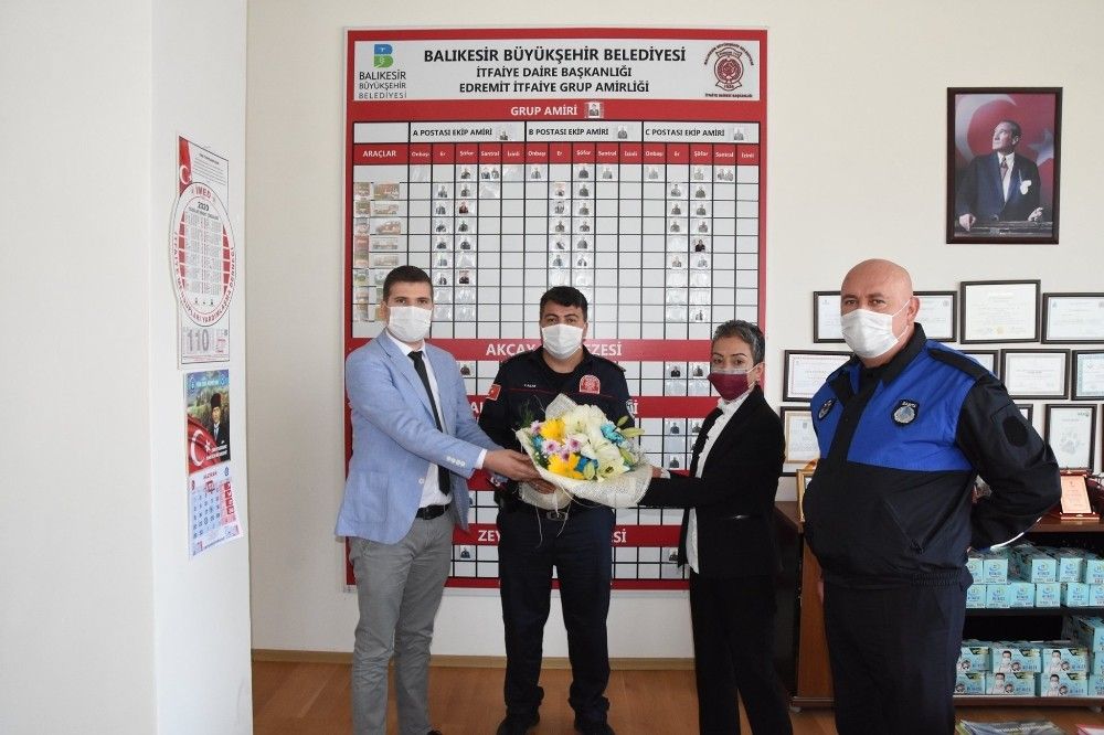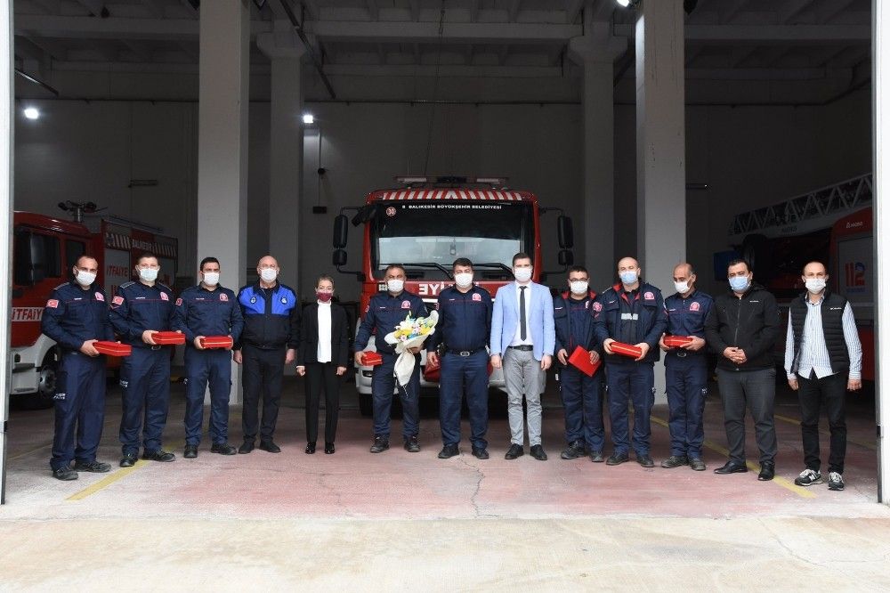 İzmir depreminde görev alan itfaiyecilere Edremit Belediyesi plaket ile teşekkür etti