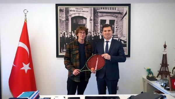 Ulusal tenis turnuvalarındaki onlarca birinciliği ve aldığı madalyalarla tanınan Edremitli tenisçi Yağız Baygın, 18 yaş tenis milli takımı oyuncusu olmak için çalışmalarını sürdürürken, Edremit Belediyesi'nin desteğiyle milli takım yolunda basamakları çıkmaya devam ediyor. Bu kapsamda Yağız Baygın, Edremit Belediye Başkan Yardımcısı Tayfun Canlı'yı ziyaret etti.