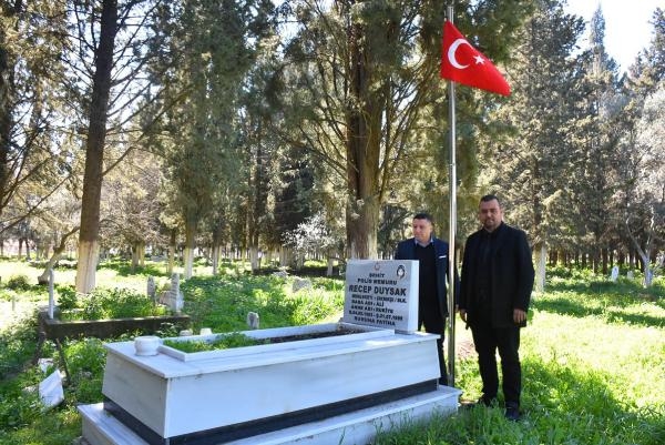Edremit'te şehitlerin mezarlarının bakımı yapıldı, bayrakları yenilendi