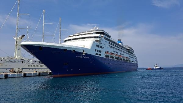 Ege'de ilk seferine çıkan kruvaziyer gemisi, Kuşadası Limanı'na demirledi