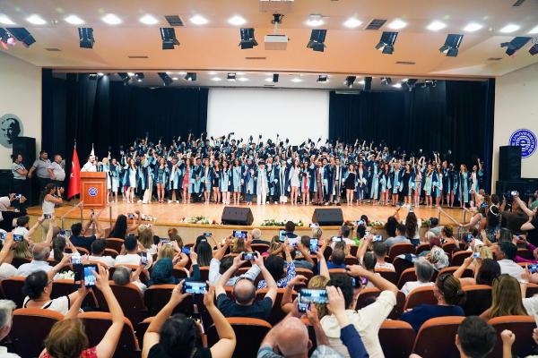 Töreninin açılış konuşmasını gerçekleştiren EÜ Rektör Yardımcısı Prof. Dr. Mehmet Ersan, "Dünyayı etkileyen pek çok olumsuzluk ve ülkemizde yaşanan deprem felaketine rağmen, yine sanattan spora tıptan sanayiye, edebiyattan sağlığa birçok alanda önemli başarılara imza attığımız çok verimli bir yılı geride bıraktık. Rektörümüz Prof. Dr. Sayın Necdet Budak'ın, öğrenci odaklılık, eğitim-öğretimde kalite ve araştırma üniversitesi olma hedeflerine ulaşmış, dijitalleşme ve uluslararasılaşma hedeflerine ise emin ve sağlam adımlarla yürümektedir. Üniversitemizin başarısında ve her türlü faaliyetinde emeği ve katkısı olan bütün personelimize şahsım ve Ege Üniversitesi adına bir kez daha teşekkür ediyorum" dedi. Prof. Dr. Ersan, "Sevgili aileler, gözünüz gibi bakıp büyüttüğünüz çocuklarınız bugün sizlere en güzel hediyeyi veriyor. Meslek sahibi birer birey olarak hem kurumsal hem de bölüm olarak akredite olmuş bir üniversiteden, Egeli olmanın ayrıcalığı ile mezun oluyorlar. Çocukların başarılarında sizlerin de büyük emekleri ve fedakârlıkları bulunuyor. Bu sebeple sizleri tebrik ediyorum. Gençlerimiz de öğrenci olmanın sorumluluğunu yerine getirdiler. Bundan sonra onları daha büyük sorumluluklar bekliyor. Hepinize hayatınız boyunca başarılar diliyorum" diye konuştu.