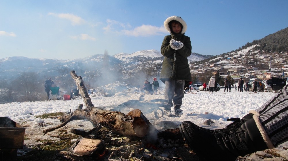 Kara hasret yaşayan binlerce Egeli, kar hasretini Balıkesir'in Sındırgı ilçesinde dindirdi.