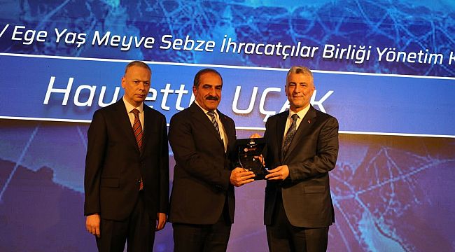Ege İhracatçı Birlikleri Koordinatör Başkan Yardımcısı ve Ege Yaş Meyve Sebze İhracatçıları Birliği Başkanı Hayrettin Uçak’a En Başarılı UR-GE Projesi ödülünü Ticaret Bakanı Prof. Dr. Ömer Bolat takdim etti.