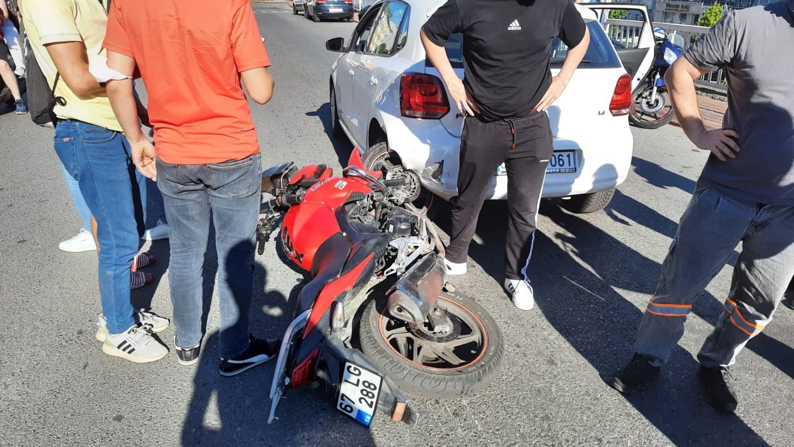 Kaza, ilçeye bağlı Müftü Mahallesi'nde meydana geldi. Edinilen bilgilere göre, Pelin A. idaresindeki 67 AAK 061 plakalı Volkswagen marka otomobile, Emrullah S.Ç. idaresindeki 67 LG 288 plakalı motosiklet çarptı. Motosiklet sürücüsünün direksiyon hakimiyetini kaybetmesi sonucu, otomobilin sol arka çamurluğuna çarptı. Motosiklet sürücüsü kazayı hafif sıyrıklarla atlatırken, otomobilde maddi hasar meydana geldi. Caddede trafik bir müddet kontrollü olarak sağlanırken olay yerine gelen polis ekipleri tarafından rapor tutuldu. Motosiklet sürücüsünün ehliyetsiz olmasından dolayı idari işlem uygulandı. Kazaya karışan araçların yoldan kaldırılmasıyla trafik normale döndü. Kaza ile ilgili soruşturma başlatıldı.