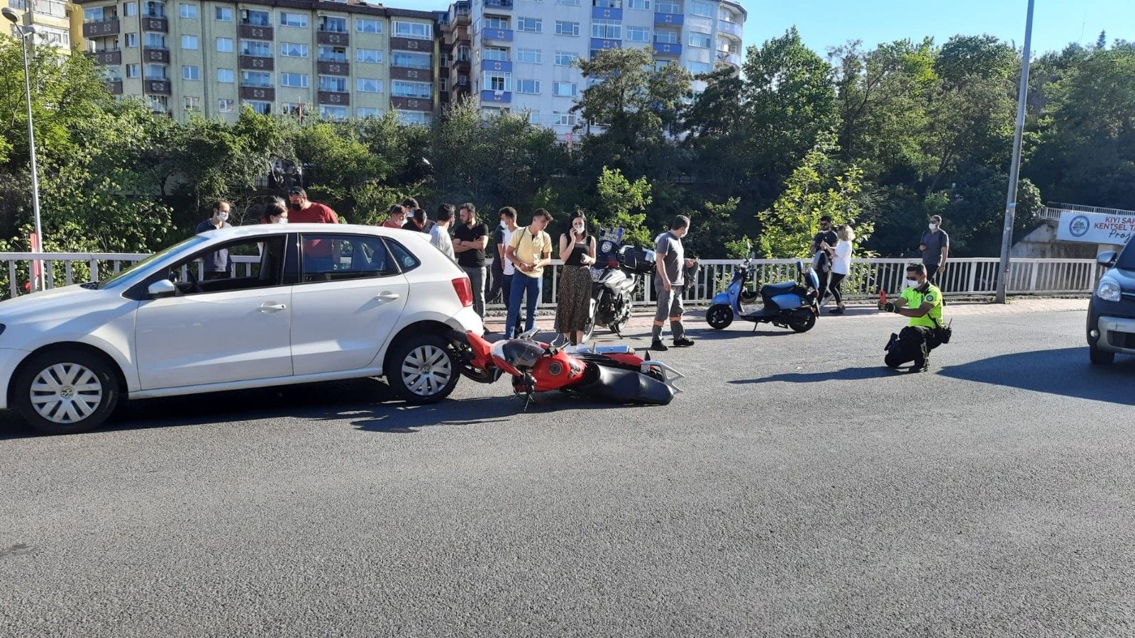 Ehliyetsiz motosiklet sürücüsü otomobile çarptı