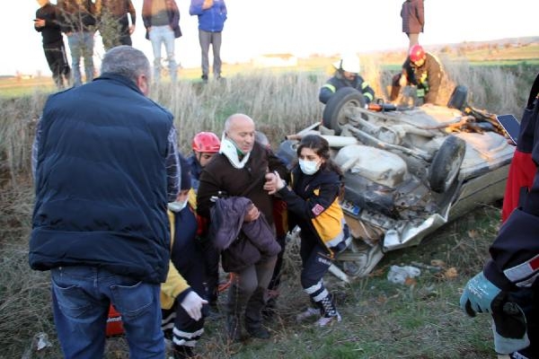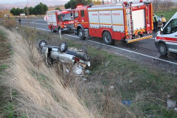 MANİSA'nın Kula ilçesinde jandarmanın yol denetimini fark edip, ani fren yapan ehliyetsiz sürücü Cevdet Polat'ın (52) otomobiline, arkadan gelen başka bir otomobil çarptı. Yol kenarındaki sulama kanalına düşerek, ters dönen otomobilde sıkışan Polat, ağır yaralandı.
