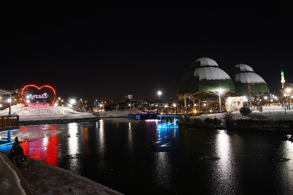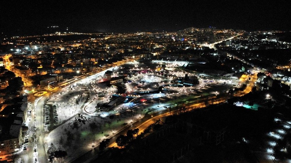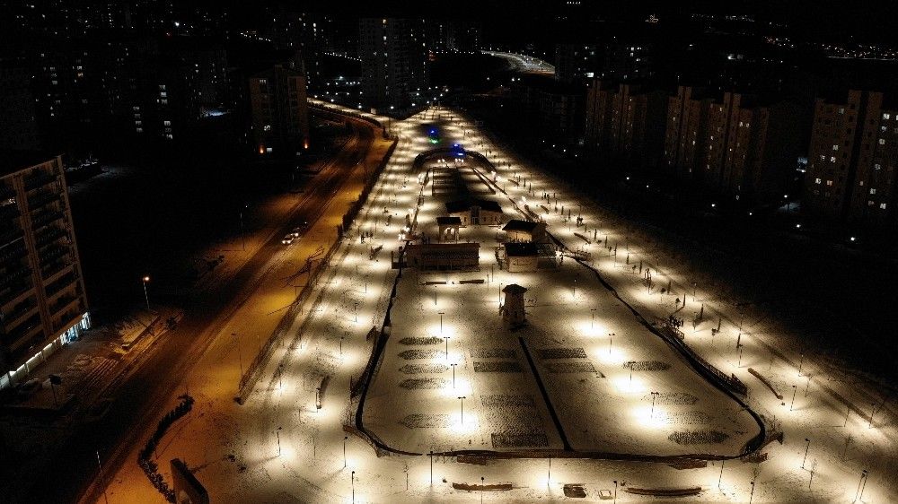 Beyaza örtü ile kaplanan şehirden dikkat çeken iki mekanda drone ile havadan görüntülendi.
