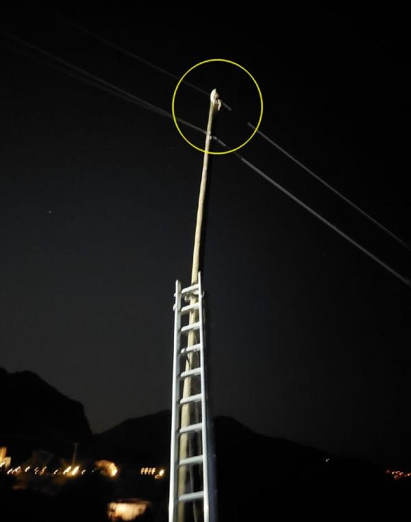 MUĞLA'nın Seydikemer ilçesinde 15 metrelik elektrik direğinin tepesinde mahsur kalan kedi, itfaiye ekiplerince kurtardı.
