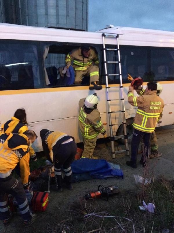 BALIKESİR'de kontrolden çıkıp yol kenarındaki beton elektrik direğine çarpan servis midibüsünün sürücüsü Cengiz Söylen (61), hayatını kaybetti.