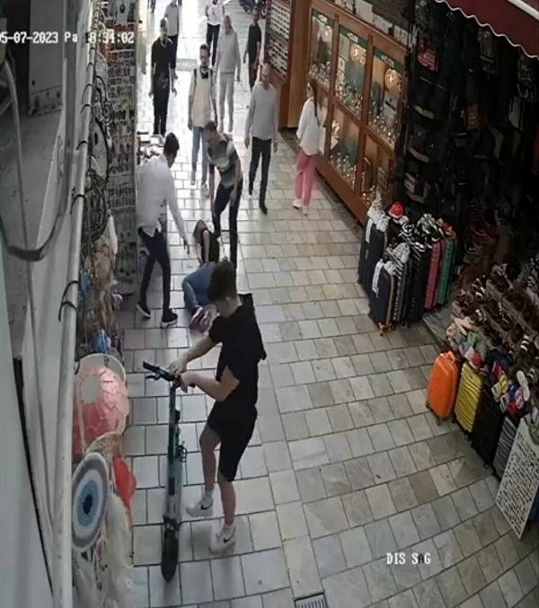 Olay, geçen hafta Çarşı Mahallesi Cumhuriyet Caddesi'nde meydana geldi. Caddede kalabalığın arasında hızla seyreden skuter, bir işletmeden çıkan kadına çarptı. İsmi öğrenilemeyen kadın, çarpmanın etkisiyle yere düştü. Dengesini kaybeden skuter sürücüsü ise son anda durabildi. Çevredekiler, yaralı kadının yanına koşarak yardım etti. Yaralının durumunun iyi olduğu belirtilirken, vatandaşlar trafiğe kapalı alanda skuter kullanılmasına tepki gösterdi. Öte yandan, kaza anı, bir iş yerinin güvenlik kamerası tarafından saniye saniye görüntülendi. (DHA)