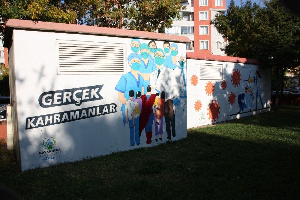 Diyarbakır'ın Kayapınar İlçe Belediyesi, kentin duvarlarına korona virüsün baş kahramanları sağlık çalışanlarını, tarihi mekanlarını ve Diyarbakır şivesi ile korona virüs tedbirlerini resmetti