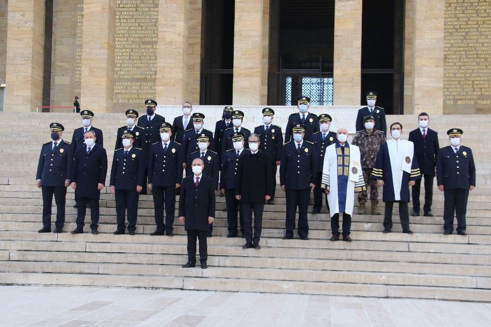 Anıtkabir ziyaretinde Emniyet Genel Müdürü Mehmet Aktaş'ın yanı sıra Polis Akademisi Başkanı Prof. Dr. Yılmaz Çolak, Ankara Emniyet Müdürü Servet Yılmaz, daire başkanları, öğretim üyeleri ve polis müdürleri yer aldı.