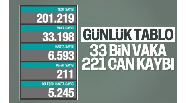 Sağlık Bakanlığı, son 24 saatte 211 kişinin korona virüsten hayatını kaybettiğini, 33 bin 198 yeni vaka sayısının olduğu açıkladı.
