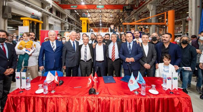 İzmir Büyükşehir Belediyesi'ne bağlı Metro A.Ş. ile Demiryol İş Sendikası arasındaki 9’uncu dönem toplu iş sözleşmesi, Halkapınar İzmir Metro A.Ş. Genel Müdürlüğü’nde düzenlenen törenle imzalandı. Metro ve tramvay işletmelerinde farklı iş kollarında 627 çalışanı kapsayan ve en düşük maaşın brüt 4 bin 856 TL’den, brüt 7 bin 553 TL’ye çıkarıldığı sözleşmenin imza törenine; İzmir Büyükşehir Belediye Başkanı Tunç Soyer, Demiryol- İş Sendikası İzmir Şube Başkanı Hamdullah Giral, Türk İş 3. Bölge Temsilcisi Hayrettin Çakmak, İzmir Metro A.Ş. Genel Müdürü Sönmez Alev, İzmir Metro A.Ş Yönetim Kurulu Başkanı Raif Canbek ile sendika temsilcileri ve işçiler katıldı. Başkan Tunç Soyer, “Eşit işe eşit ücret”, “Halkçı Başkan”, “Büyük Başkan” sloganlarıyla ve “Güzel günler göreceğiz” sloganları ile karşılandı.