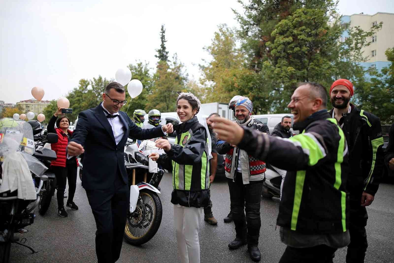 Bahar ve Burak'ın motosiklet hayalleri olduğunu belirten Bursa Motosiklet Derneği yöneticilerinden Ahmet Kurt, "Burak, bize böyle bir düğün yapmayı arzuladıklarını iletti. Bizler de onları bu mutlu gününde yalnız bırakmadık. Toplu bir şekilde gelinimizi aldık. Şimdi nikaha gidiyoruz" dedi.