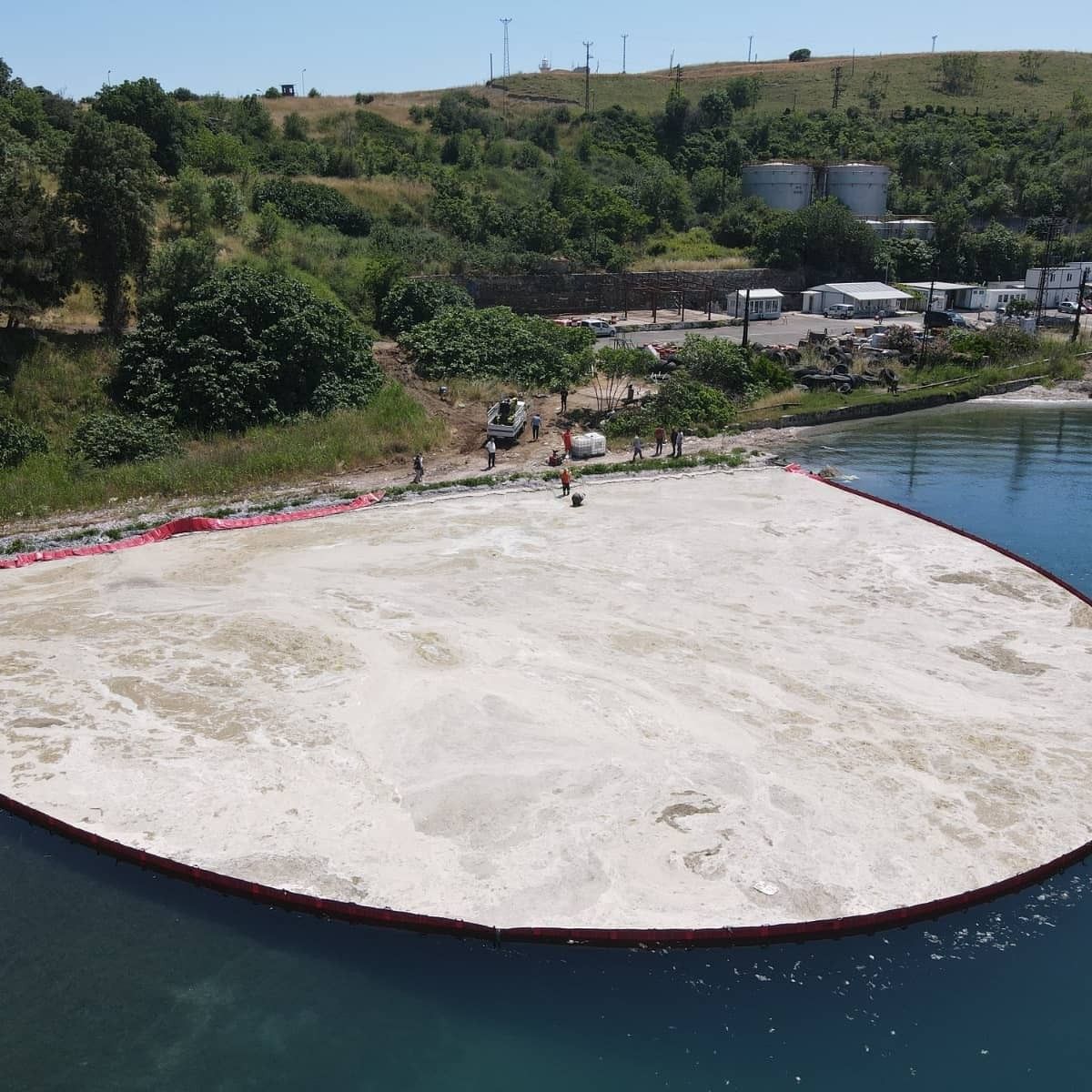Marmara Denizinde müsilaj temizliği tüm hızıyla sürüyor. Tekirdağ Çevre ve Şehircilik İl Müdürlüğü ve Marmaraereğlisi Belediyesi ekiplerinin çalışması ile ilçenin kıyılarında biriken salyalar, bariyerler ile özenli bir şekilde hapsedilerek kıyıya çekildi. Burada hapsedilmiş salyalar jeneratör ile tanklara çekildi.