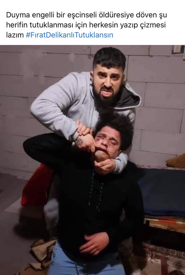 Burada iddiaya göre Fırat K. ve arkadaşları, Engin E'yi darp etmeye başladı. Fırat K., elindeki bıçağı işitme engelli Engin D'nin boğazına dayadığı haldeki çekilen görüntüsünü sosyal medyadan paylaştı. Engin E'nin ise işaret dilini kullanarak darp edildiği anları anlattığı görüntüsü, sosyal medya kullanıcıları tarafından "#FıratDelikanlıTutuklansın" hashtagi ile paylaşıldı. Kısa sürede sosyal medya kullanıcılarının tepkisini çeken görüntüler, büyük yankı uyandırdı.