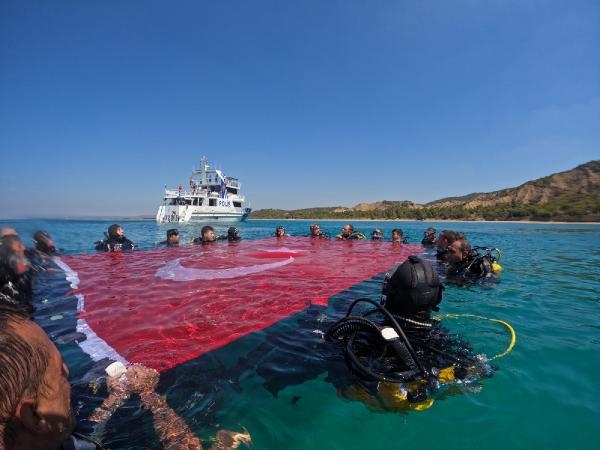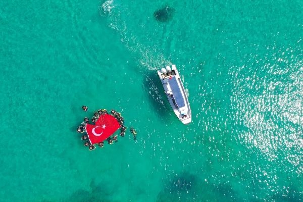 SU YÜZÜNE ÇIKIŞTA TÜRK BAYRAĞI AÇILDI