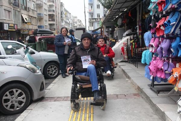 Engelli vatandaşların trafikte ve alışverişte erişimini kolaylaştırmaya dikkat çekmek amacıyla, 'Engel olma, farkında ol, sorumlu ol, destek ol', 'Lütfen araçlarınızı kaldırımlara park etmeyin', 'Kent hakkının korunması için #BizVarız', 'Hayatı paylaşmak için engel yok' yazılı broşürler dağıtıldı. Engellilerin geçişini zorlaştıracak şekilde kaldırımların işgal edilmemesi, kaldırımlarda görme engelli bireyler için yapılan hissedebilir zemin kaplamalarının ve kaldırım rampalarının araçlarla kapatılmamasına dikkat çekilen yürüyüşe bazı esnaf ve vatandaşlar da destek verdi. (DHA)