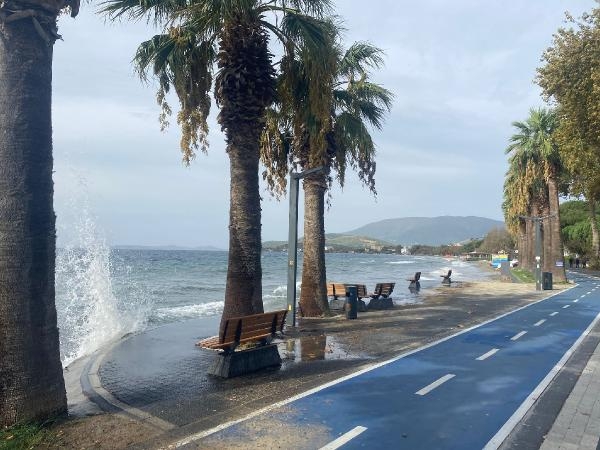 Gün boyu devam eden şiddetli lodos nedeniyle Erdek sahilinde deniz karayla birleşti. Lodosun gece boyunca da devam edeceği öğrenildi.