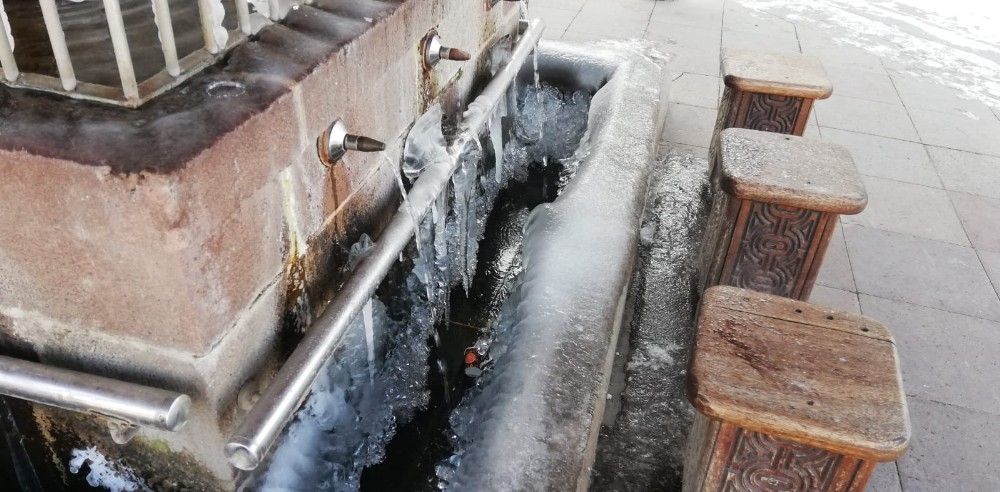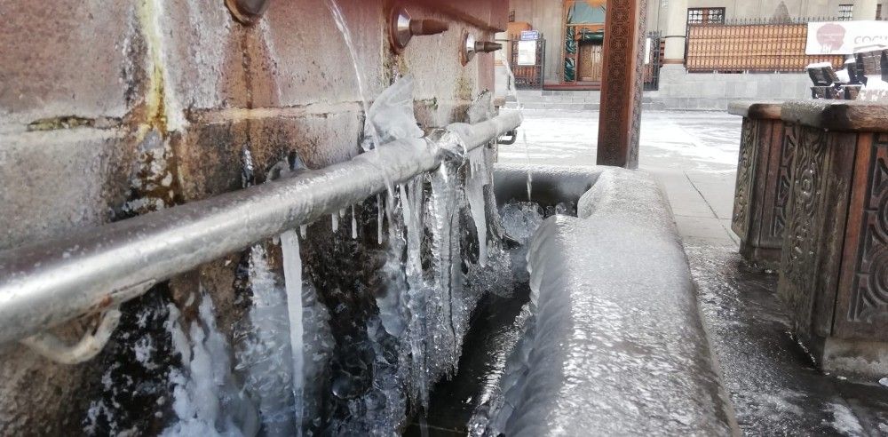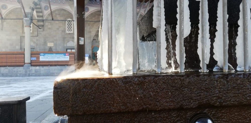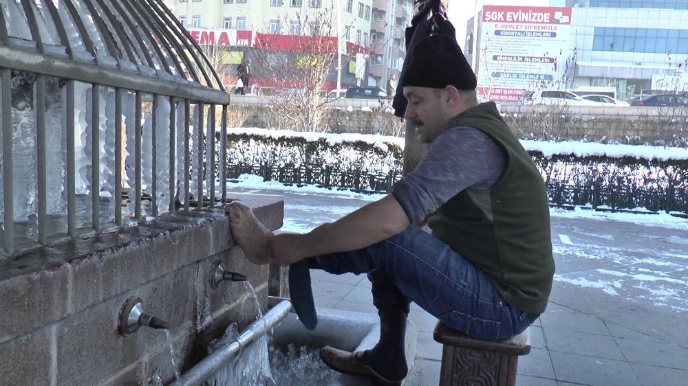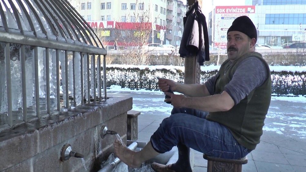 Cuma namazı öncesi dondurucu soğukta buz tutan şadırvanda abdest alan Erzurumlular, "Bugün kış yeni geldi. Erzurum soğuk olmadan olmaz. Biz bu havaya alışığız" dediler.