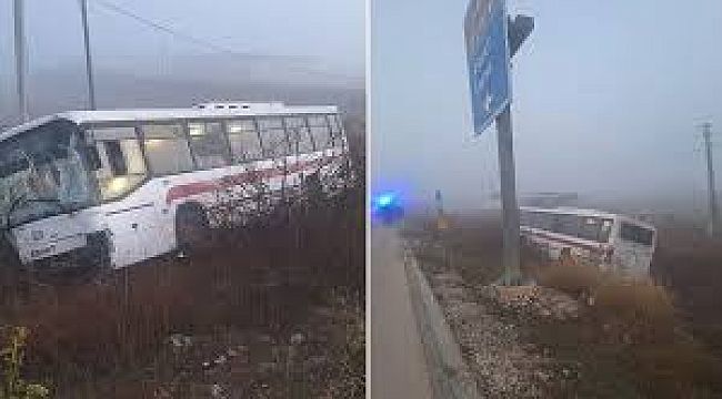 İzmir'in Urla ilçesinden Çeşme istikametine giden ESHOT otobüsü, yoğun sisin de etkisiyle sürücünün kontrolü kaybetmesi sonucu yoldan çıktı. Sürücü ve tek yolcu kazayı yara almadan atlattı.