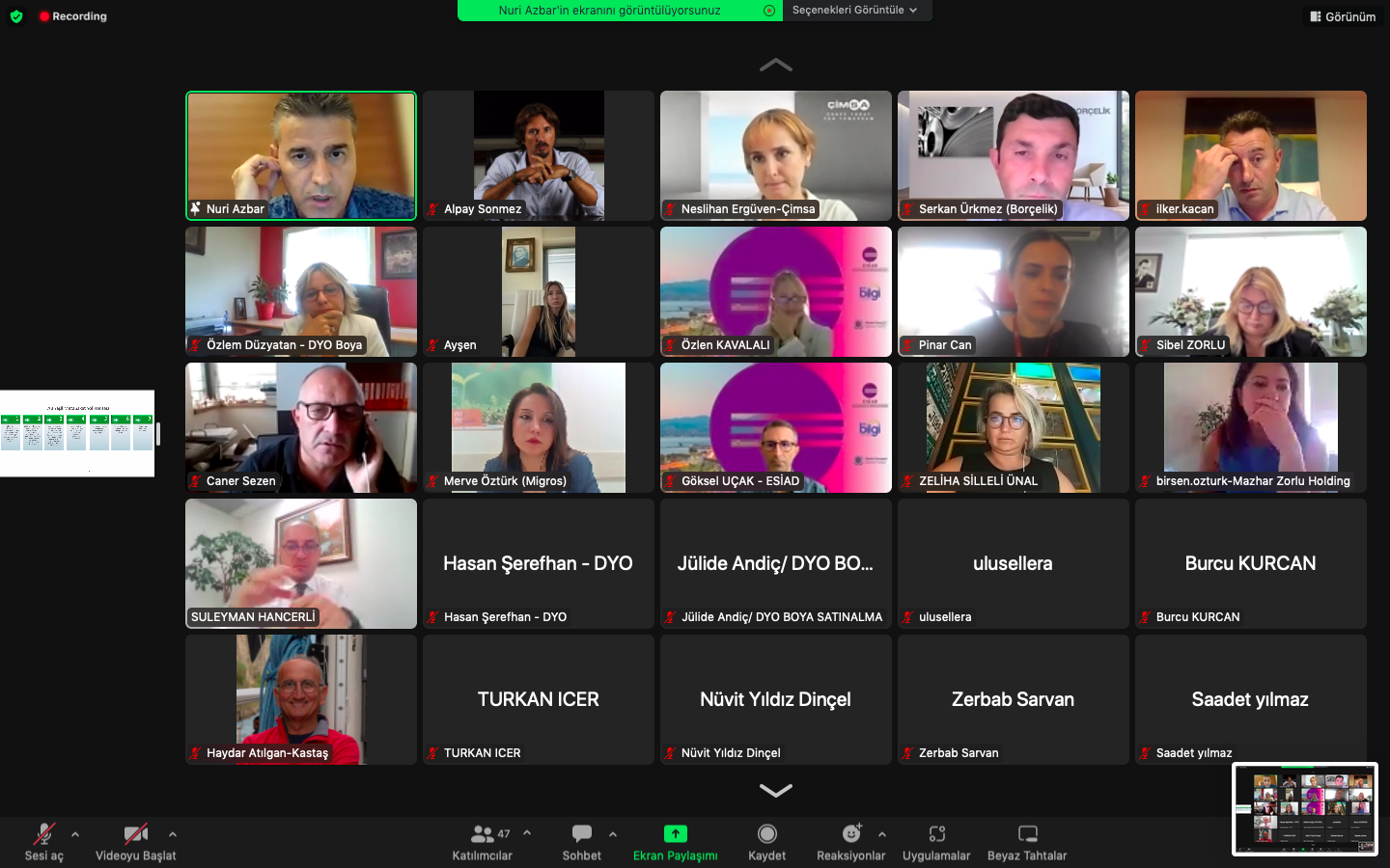 DYO Boya’dan Özlem Düzyatan ise DYO Boya olarak yürüttükleri atık yönetimi ve sürdürülebilirlik çözümlerini anlattı. Kuruluştan bu yana üretim süreçlerini de paylaşan Düzyatan, DYO BOYA’nın günümüzdeki üretim yapıları hakkında da bilgilendirmeler yaptı. Yaşar Holding olarak ‘Daha İyi Bir Yaşam İçin Değer Yaratma’ sloganı ile daha kapsamlı bir çalışma içinde olduklarını ifade eden Düzyatan, “Kaynakların sürdürülebilirliği anlamında atık yönetimini düzenliyoruz. Atık miktarının düşürülmesi odaklı faaliyetler içindeyiz. Ürünlerimizin yaşam döngüsünü hesaplıyoruz, bu anlamda karbon ayakizimizi ölçüyoruz. Sağlığa ve doğaya uyumlu ambalaj çalışmaları içindeyiz” dedi.