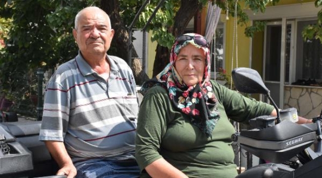 İZMİR'de Hanım Erol'un (64), rahatsızlığı nedeniyle yürümekte zorlanan eşini istediği yere götürmek ve ihtiyaçlarını karşılamak için aldığı ATV, zamanla tutkusu oldu. Erol, "Bizi yolda görenler, durdurup, resim çekiyor. Bol bol fotoğraf çekiliyoruz. 'Teyze seninle gurur duyuyoruz' diyorlar" dedi.