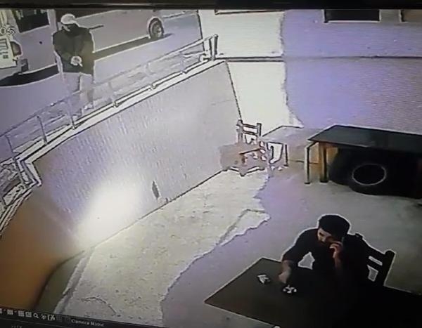Katil zanlısı Orhan'ın işlediği cinayetin güvenlik kamerası görüntüleri ortaya çıktı. Görüntülerde Orhan'ın iş yerinin önüne gelip, cebinden çıkardığı tabancayla sandalyede oturan Göktaş'ı hedef alıp, peş peşe ateş etmesi yer alıyor. (DHA)