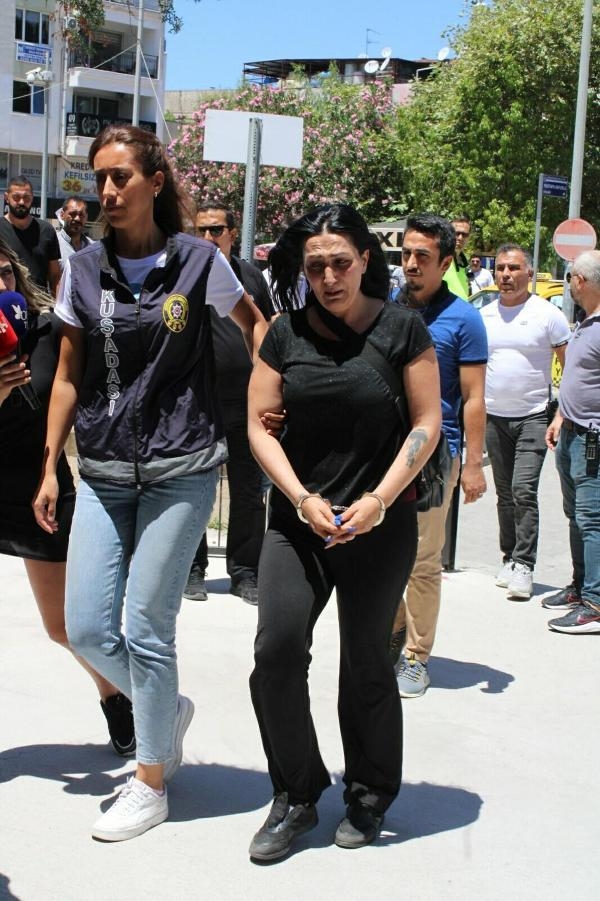 AYDIN'ın Kuşadası ilçesinde, hafif ticari aracıyla otomobilinin önünü kesen Mustafa Teksöğüt'ü (51) tabancayla öldüren Esra Abid (37) polisteki işlemlerinin ardından sevk edildiği adliyede, çıkarıldığı mahkemece tutuklandı.