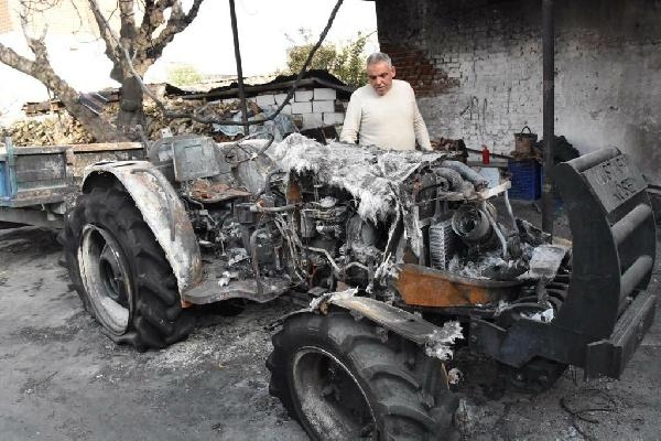 Germencik ilçesi Park Mahallesi'nde yaşayan Fatih Köse, 1 yıl önce 260 bin liraya satın aldığı 09 FK 532 plakalı traktörünü, 27 Mart'ta evinin önüne park edip, bir iş için Germencik'ten ayrıldı. Aynı akşam, traktörün motor kısmından önce dumanlar, ardından alevler yükseldi. Durumu fark eden komşuları, ilk müdahaleyi hortumlarla su sıkarak yaptı, durum itfaiyeye bildirildi. Gelen ekipler, alevler römorka ve eve sıçramadan yangını söndürdü. Traktör tamamen yanıp demir yığınına döndü, o anlar ise evin güvenlik kamerasına yansıdı.