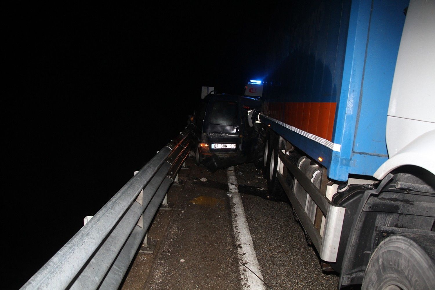Kaza, saat 23.15 sıralarında İzmir-Ankara D300 karayolu Yurtbaşı Mahallesi köprüsünde meydana geldi. Edinilen bilgiye göre, Uşak'tan İzmir yönüne doğru seyir halinde olan Fatih Mehmet Uyanık idaresindeki 34 BC 3559 plakalı tır, yağışlı havanın da etkisiyle kayganlaşan yolda kontrolden çıktı. Karayolunda savrulan tır, köprünün sağ tarafında bulunan bariyerlere çarparak köprüden aşağıya uçmaktan son anda kurtuldu. Tır kazasının hemen ardından aynı yönde seyir halinde olan Can Deniz Oğuz idaresindeki 07 GUN 93 plakalı hafif ticari otomobil de, kayganlaşan yolda kontrolden çıkarak kaza yapan tıra arkadan çarptı. Çarpmanın şiddetiyle tır ile bariyerler arasında sıkışarak hurdaya dönen otomobilde bulunan 2 kişi, kazayı burunları bile kanamadan atlattı.
