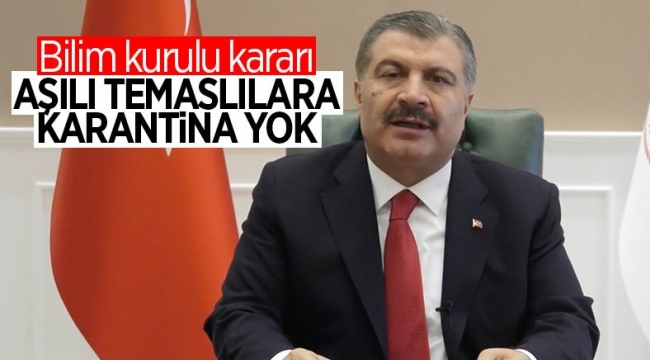Sağlık Bakanı Fahrettin Koca, Bilim Kurulu sonrası yaptığı açıklamasında aşısı tam olan temaslıya karantina uygulanmayacağını söyledi.